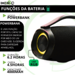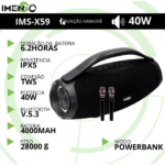Com uma bateria de longa duração de 4000mAh e várias opções de entrada (Tipo-C, USB, Auxiliar, Mic e TF), a X59 é perfeita para uso em casa, festas, viagens e muito mais. Carregue facilmente e desfrute de horas de entretenimento sem interrupções.