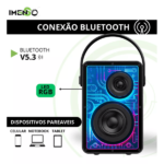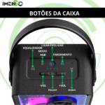 Alta Potência Sonora: Equipada com 60W de potência, a caixa de som Imenso X61E garante um som vibrante e de alta qualidade, ideal para festas e reuniões.