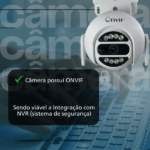 Além disso, possui um design robusto e resistente às intempéries, para suportar as condições ambientais externas. Elas também podem ser facilmente instaladas em uma variedade de superfícies, como paredes ou postes, para garantir uma visão clara e ampla da área monitorada.