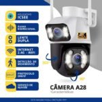 A Câmera de Segurança A28B oferece vigilância abrangente com duas câmeras em um único aparelho, combinando design robusto e materiais duráveis para resistir às condições climáticas. Ideal para monitorar áreas amplas com alta definição e recursos avançados.