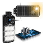 * Ao lado, o painel solar pode fornecer energia solar sem parar para a câmera ao ar livre dia ou noite, ensolarado ou chuvoso.