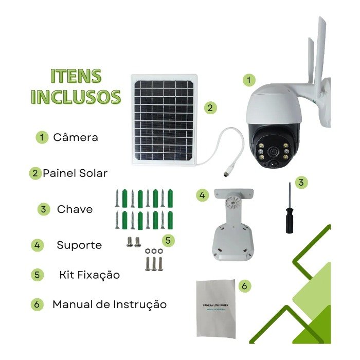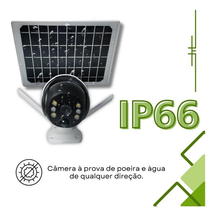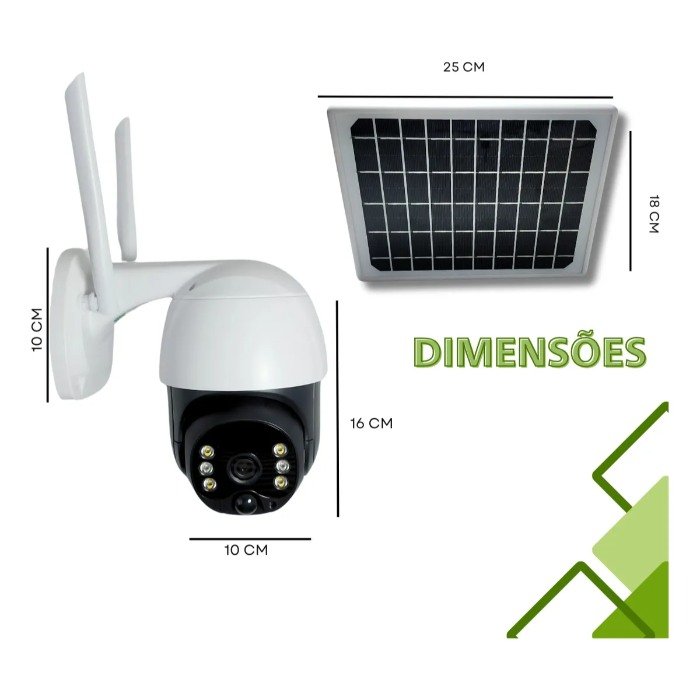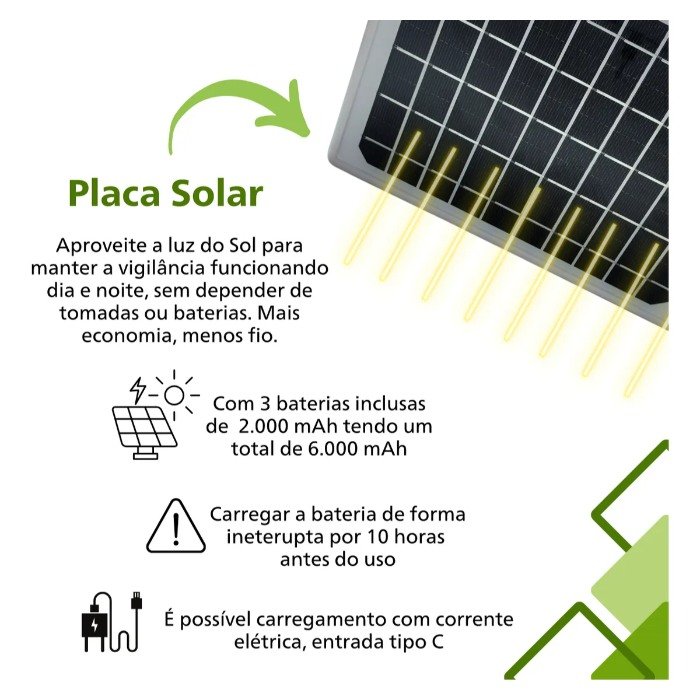 6 baterias de 2000mAh: Proporciona autonomia para o funcionamento da câmera, mesmo em condições de pouca incidência solar.