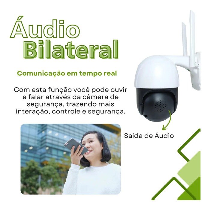 Microfone e alto-falante: Permite a comunicação bidirecional, ou seja, ouvir e falar através da câmera.