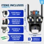 Zoom Poderoso para Detalhes Essenciais: Precisa de mais detalhes? A câmera inferior oferece um zoom de 6x, permitindo que você amplie áreas específicas para uma análise mais minuciosa. As câmeras superiores possuem foco fixo, ideais para o monitoramento geral.