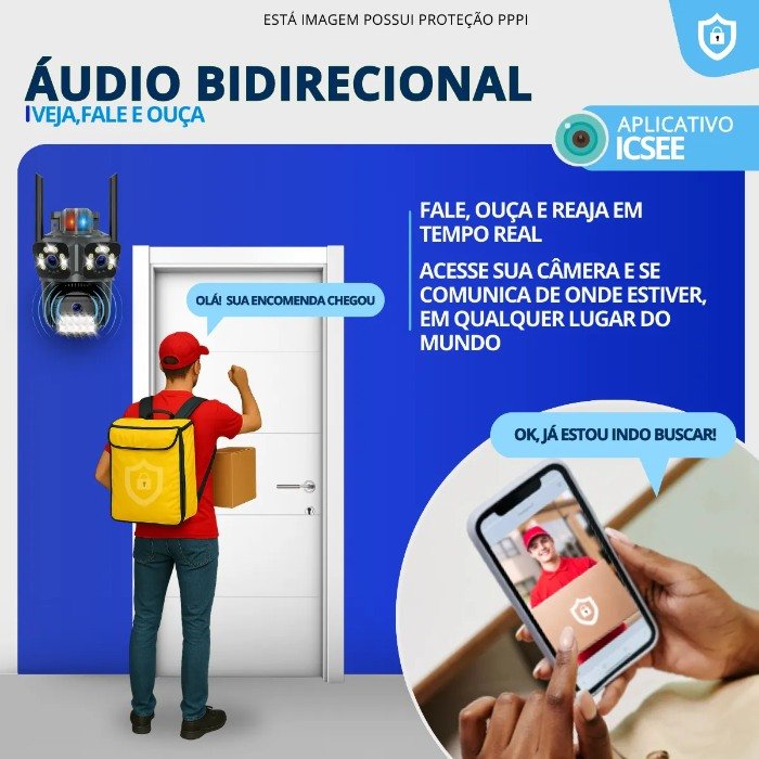 Comunicação Bidirecional Clara: Mantenha a comunicação em tempo real! O áudio bidirecional permite que você ouça o que acontece no ambiente monitorado e também fale através da câmera, ideal para interagir com visitantes, funcionários ou até mesmo dissuadir invasores.