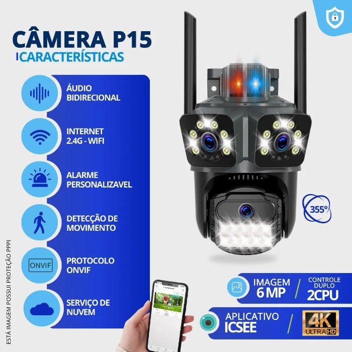 Prepare-se para uma nova era de vigilância com a Câmera de Segurança P15, o mais recente lançamento de 2025 e, uma EXCLUSIVIDADE nossa no mercado brasileiro! Se você busca o que há de mais avançado em monitoramento, com qualidade de imagem impecável e recursos inteligentes incomparáveis, sua busca acaba aqui. A P15 chegou para elevar o nível da sua segurança!