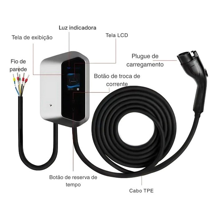 Carregador Automotivo Carro Elétrico Bivolt 32A 7kw Ip54 |