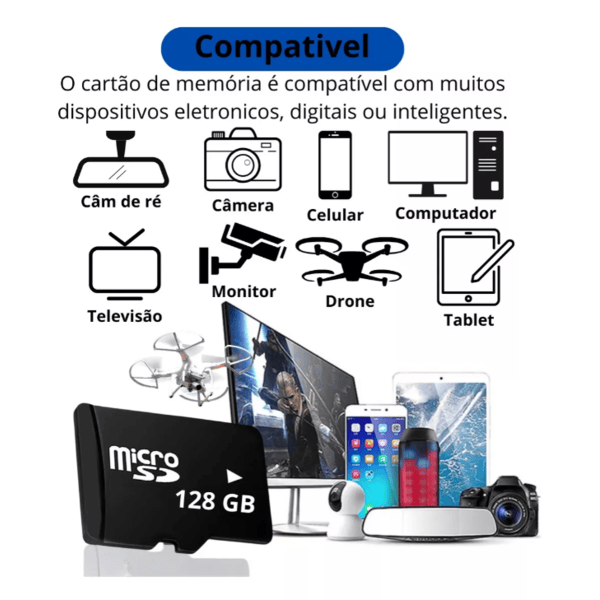 Cartão de memória de 128 GB.