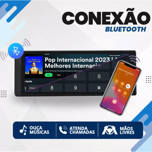 * Conexão BT, chamadas viva-voz BT, música BT, download de lista telefônica, registros de chamadas