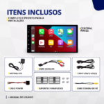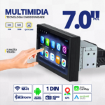 Central multimídia Android 1 din 7 polegadas 2GB de ram 32GB Tela Qled Carplay Knup