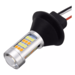No próprio soquete de seta original liga o terminal que acompanha no kit. Ou seja, a lâmpada funciona como branco e quando ativar a seta, alterna para o laranja pisca a função de seta e após isso volta pro modo branco.