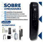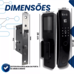 A fechadura é adequada para portas com espessura mínima de 30mm e máxima de 50mm. Além disso, ela registra um relatório completo de todos os acessos, incluindo usuários, datas e horários.