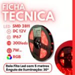 Fita LED Digital RGB Multicolor 2811 IP67 com 300 LEDs – 5 metros