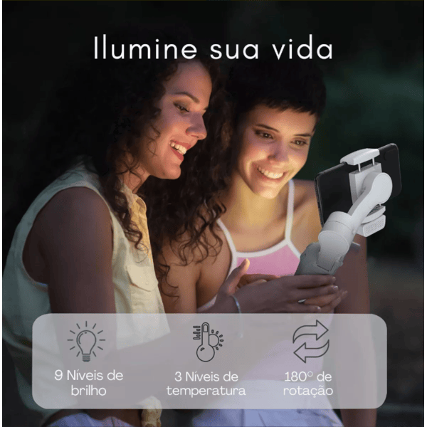 * Luz de Preenchimento Integrada: Inclui 3 modos de luz e 9 níveis de brilho, perfeita para gravações noturnas ou em baixa iluminação.