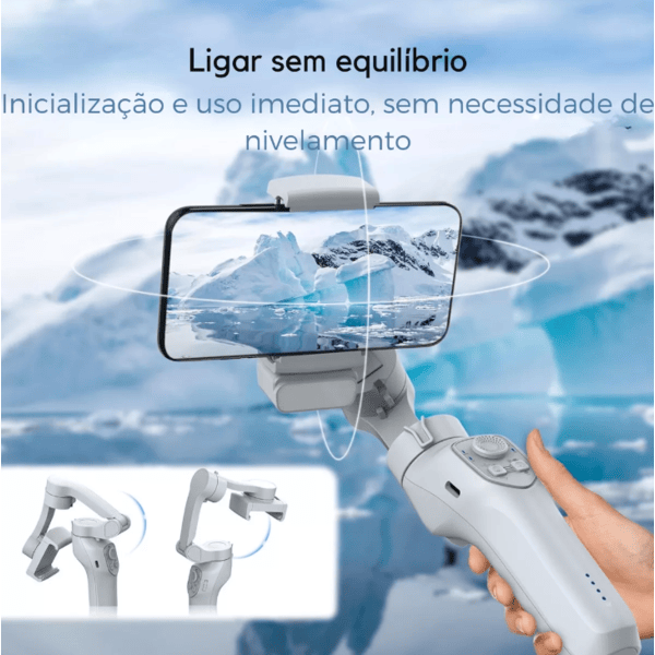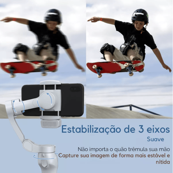 * Estabilização em 3 Eixos: Suas filmagens ficam livres de tremores e movimentos indesejados, proporcionando vídeos suaves e de nível profissional.