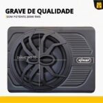 A Caixa Amplificada Slim com Subwoofer de 10″ e 200W é a solução perfeita para quem busca melhorar o som do carro sem complicação. Compacta e potente, ela é ideal para ser instalada sob o banco, no porta-malas de modelos hatch ou até em pickups. Uma excelente escolha para quem ainda utiliza o som original de fábrica e deseja um upgrade rápido e eficiente.