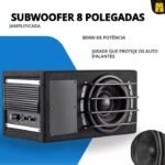 Subwoofer Slim de 8 polegadas e 300W RMS, desenvolvido para oferecer qualidade sonora superior e ampla resposta de frequência. Conta com modos de equalização BASS e FULL, permitindo ajustes precisos para uma experiência personalizada.