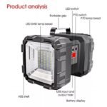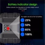 – Seus focos se diferenciam em: aberto e localizado, um de cada lado da lanterna. Sendo que possuem botões separados e um pequeno mostrador da capacidade da bateria na parte central da lanterna.