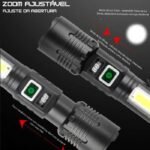 Equipada com uma lente de zoom integrado, esta lanterna permite ajustar a abertura da luz para alcançar o máximo de alcance e clareza. Tenha a flexibilidade de iluminar áreas amplas ou focar em detalhes com facilidade.