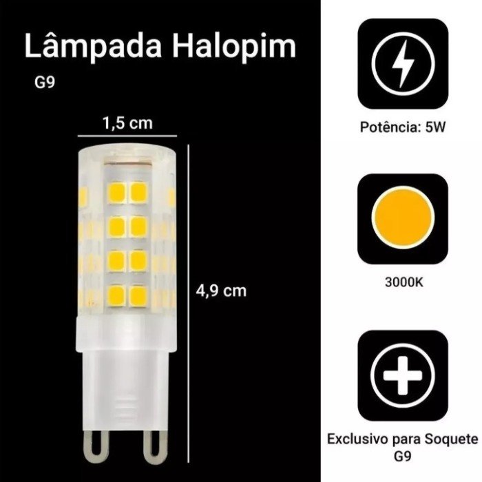– KIT 10 Lâmpada G9 5w luz branco quente/branco frio.