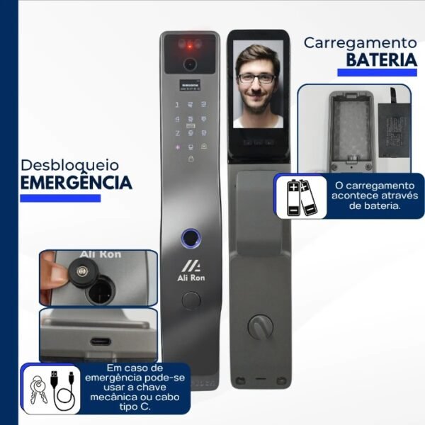 Em até 3x de R$ 126.67 sem juros FECHADURA Ali Ron A11 | Fechadura Digital Eletrônica C/Biometria C/câmera Wifi e App Tuya Smart