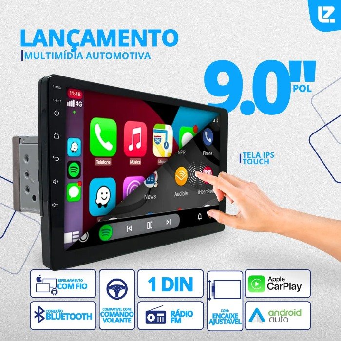 Multimídia 9 Polegadas com Android-Auto e Apple Carplay com Entrada para Camera de Ré