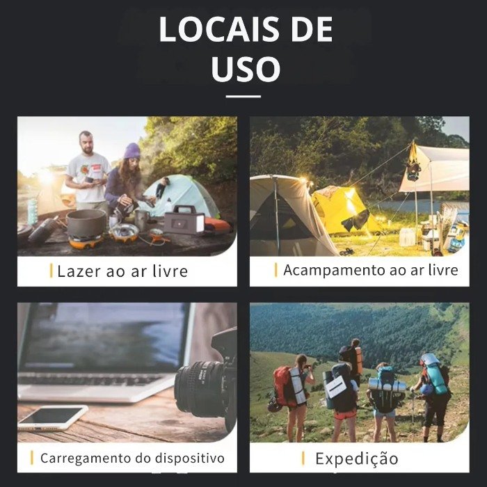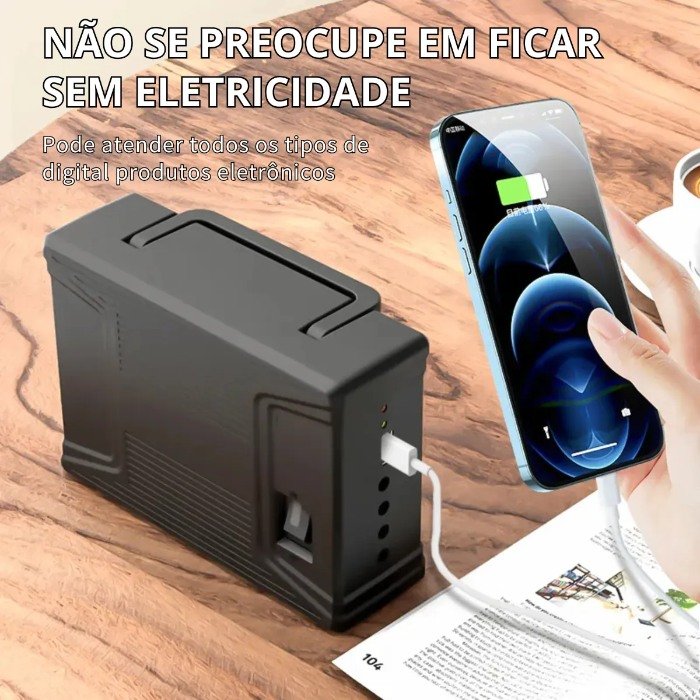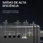 • Compatibilidade: Capaz de carregar notebooks diretamente e fornecer energia para roteadores, modems e pequenos eletrodomésticos.
