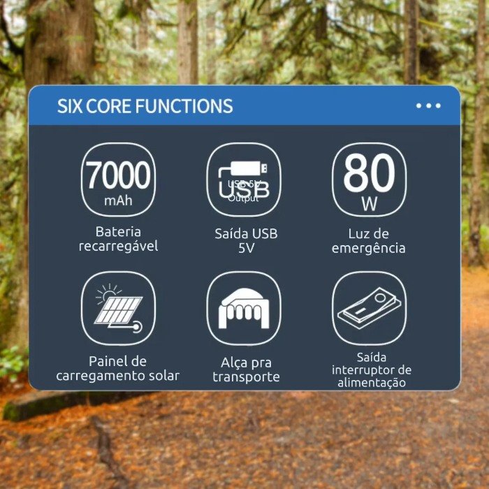 Descubra a solução definitiva para suas necessidades de energia e iluminação com o nosso Kit de Energia Solar Portátil. Perfeito para aventuras ao ar livre, emergências domésticas ou uso diário, este kit combina tecnologia de ponta e sustentabilidade para fornecer energia confiável onde quer que você esteja.