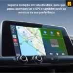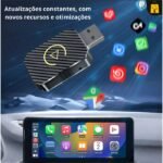 Este adaptador não adiciona CarPlay ou Android Auto à sua central multimídia. Ele apenas converte a conexão com fio em uma versão sem fio, eliminando a necessidade de cabos. Para que funcione, o seu carro já deve ser compatível com CarPlay ou Android Auto de fábrica.