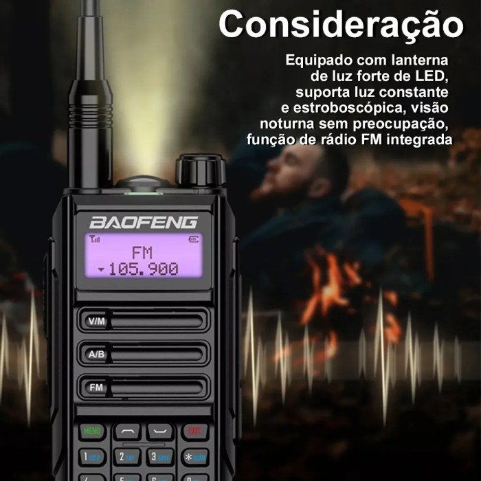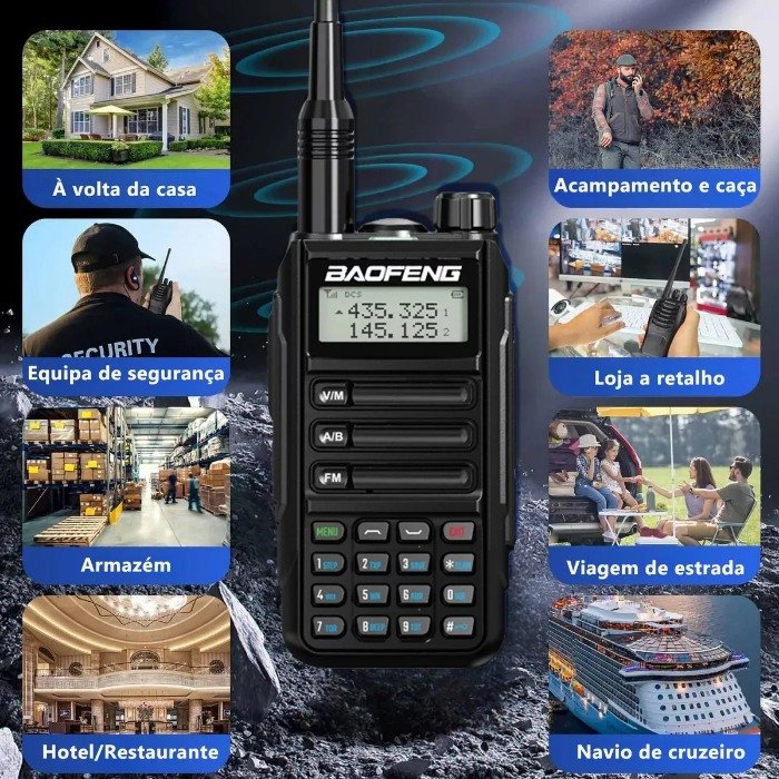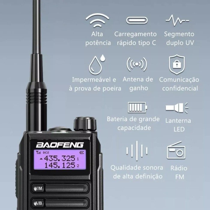 Dual Band (VHF/UHF), esse comunicador é perfeito para empresas que precisam de uma comunicação clara e confiável, mesmo em ambientes adversos. Resistente a água, poeira e impactos, ele é um dos modelos mais duráveis da linha Baofeng, garantindo segurança e desempenho em qualquer situação.