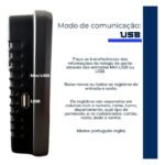 – Periodicamente, conecte um pen-drive na porta USB para exportar os registros e gerar relatórios.
