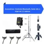 1 controle remoto, 1 ring light 18 polegadas 50w, 1 tripé reforçado 2.1m, 3 suportes para celular, Bolsa |