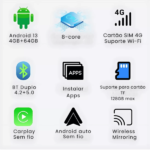 Transforme a central multimídia do seu carro em um verdadeiro sistema inteligente. Com o Streaming Box Android 13, você terá acesso a músicas, vídeos, navegação online e muito mais, com conexão 4G (via chip SIM) e Wi-Fi para compartilhar internet com os passageiros.