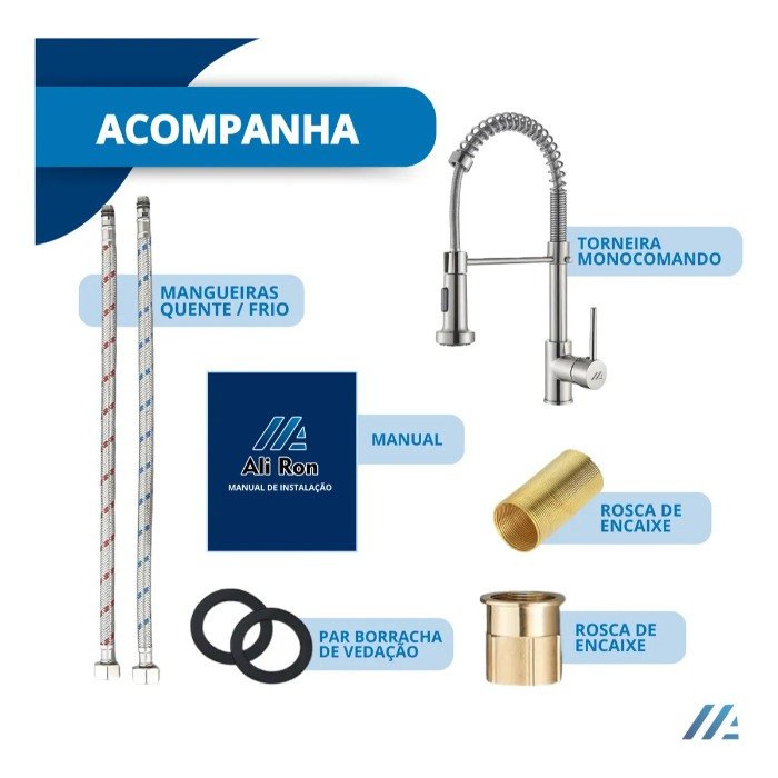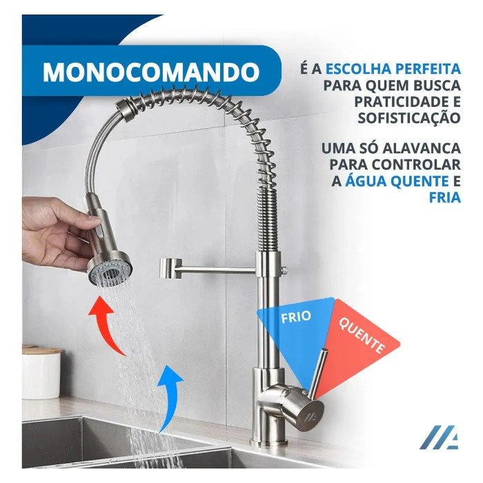 Torneira Gourmet Cozinha Monocomando em Aço Inox 304 – Acabamento Cromado – Ali Ron