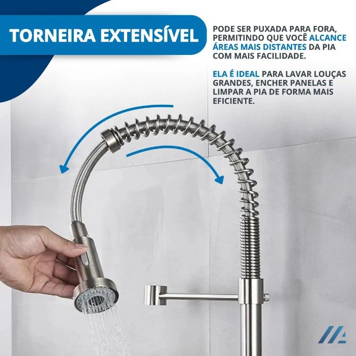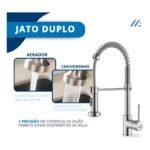Bica giratória 360°: Máxima mobilidade para lavar louças e higienizar alimentos com conforto.